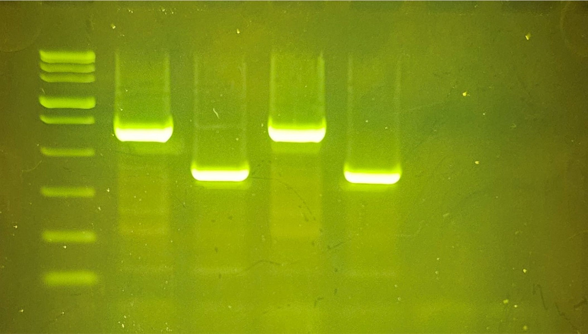 4 verschiedene zu untersuchende DNA-Proben, einschließlich Kontrollen