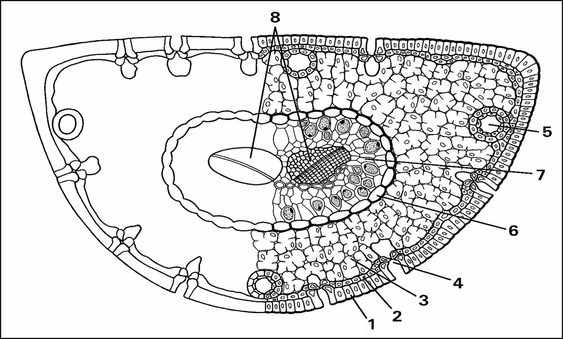 In diesem Versuch werden Mikropräparate von verschiedenen Blattquerschnitten mikroskopiert, gezeichnet und interpretiert, und zwar Querschnittspräparate vom