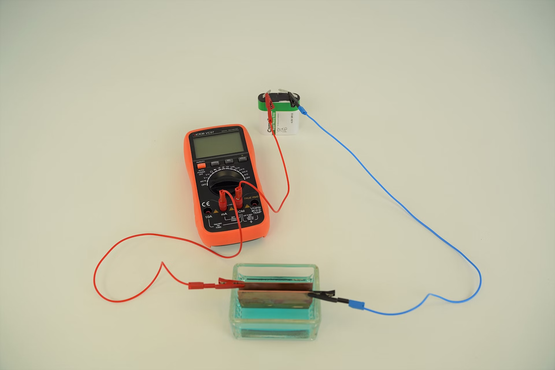 Die Faraday´schen Gesetze werden auch als Grundgesetze der Elektrolyse bezeichnet und beschreiben der Vorgang in dieser. In diesem Versuch lernen die Schülerinnen und Schüler anhand einer Elektrolyse das Prinzip des 1. Faraday´schen Gesetztes kennen, welches besagt, dass die Stoffmenge, die an einer Elektrode abgeschieden wird, proportional zur elektrischen Ladung ist, die durch den Elektrolyten gesandt wird.
