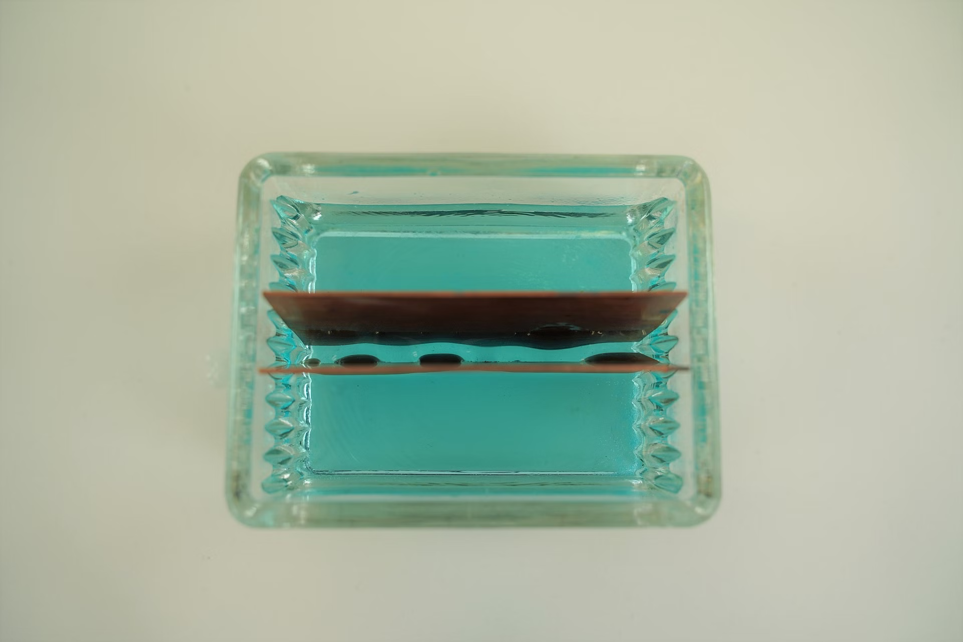 In diesem Versuch untersuchen die Schülerinnen und Schüler die Elektrolyse am Beispiel von Kupfer. Dazu werden zwei (metallische) Kupferelektroden in eine Kupfersulfatlösung (Elektrolyt) getaucht und mit einer Gleichspannungsquelle verbunden. Die Schülerinnen und Schüler bestätigen, dass die Elektrolyse eine Redoxreaktion ist, bei dem Elektronen von einem auf den anderen übertragen bzw. abgezogen werden und somit die elementaren Stoffe entstehen. Dabei fließen die Elektronen von der Anode zur Kathode. Die Kationen aus dem Elektrolyt wandern zur Anode und nehmen dort Elektronen auf, die Anionen wandern zur Kathode und geben Elektronen ab.
