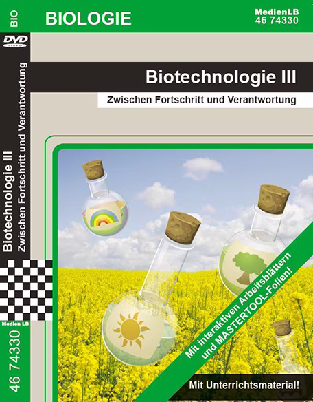 Biotechnologisches Wissen und Anwendungen lassen sich in unterschiedlichste Teilgebiete gliedern. Zur Unterscheidung wurde den jeweiligen Fachgebieten eine Farbe zugeordnet. In der DVD Biotechnologie II ging es um die rote, also die medizinische Biotechnologie. In dieser DVD werden die grüne (die Biotechnologie in der Landwirtschaft), die weiße (die industrielle) und die graue (die Biotechnologie im Umweltschutz) behandelt. Ob beim Wäsche waschen, in der Zitronenlimonade oder bei der Behandlung von Diabetes -Biotechnologie ist ein fester Bestandteil unseres Lebens. In Zukunft wird uns Biotechnologie helfen, Krankheiten besser zu behandeln, Produkte umweltfreundlicher herzustellen und weniger fossile Energieträger zu verbrauchen. Dennoch müssen Methoden der Biotechnologie stets kritisch hinterfragt und der Umwelt- und Verbraucherschutz beachtet werden, damit die Biotechnologie im Dienste der Menschheit und ohne schädliche Nebeneffekte angewendet wird.