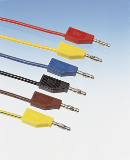 Grün-gelbe Verbindungsleitung für bis zu 32 A mit 4-mm-Steckern in verschiedenen Längen.