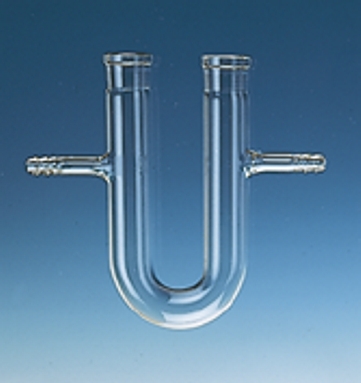 U-Rohr mit zwei Stopfenbetten SB 19 und zwei seitlichen Ansatzstutzen mit Glasoliven.