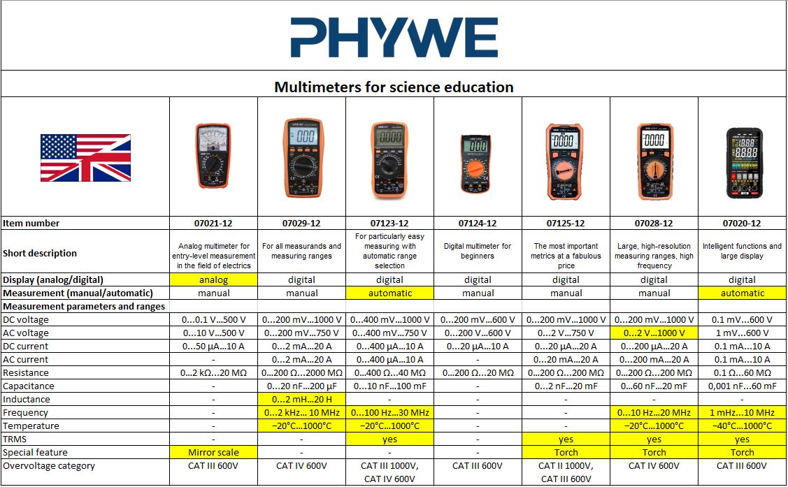 Enthaltenes Zubehör: 1,5V AAA LR03-Batterien (4x), Messleitungen, Gebrauchsanweisung