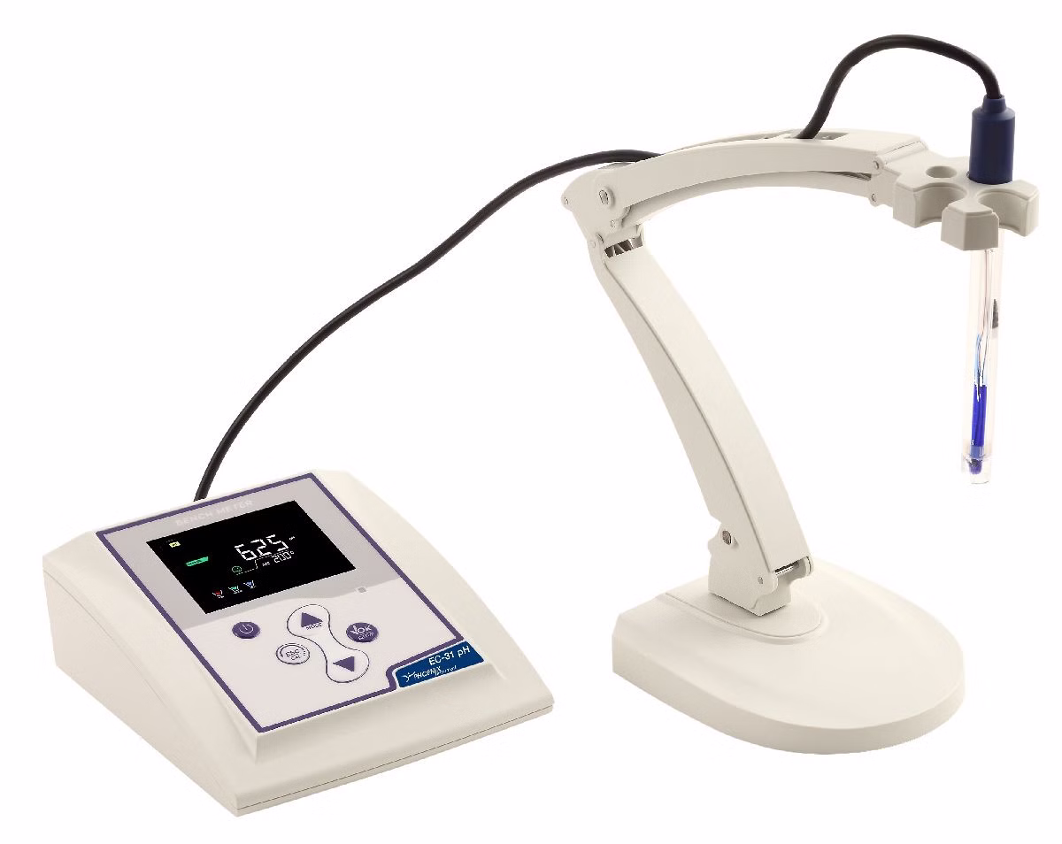 Einfaches Labor-pH-Meter mit guter Ausstattung zu einem unvergleichbar günstigen Preis. Das große, beleuchtete LCD-Display zeigt alle relevanten Messdaten und ein Stabilitätssymbol für den Messwert an. Die maximale 3-Punkt-Kalibrierung mit automatischer Puffererkennung, symbolunterstütze Menüführung und Elektrodendiagnose sorgen für einfachste Bedienung des Gerätes..