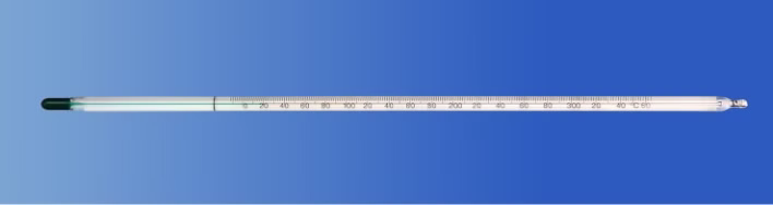 Einschlussthermometer mit grüner umweltfreundlicher (quecksilberfreier) Füllung.