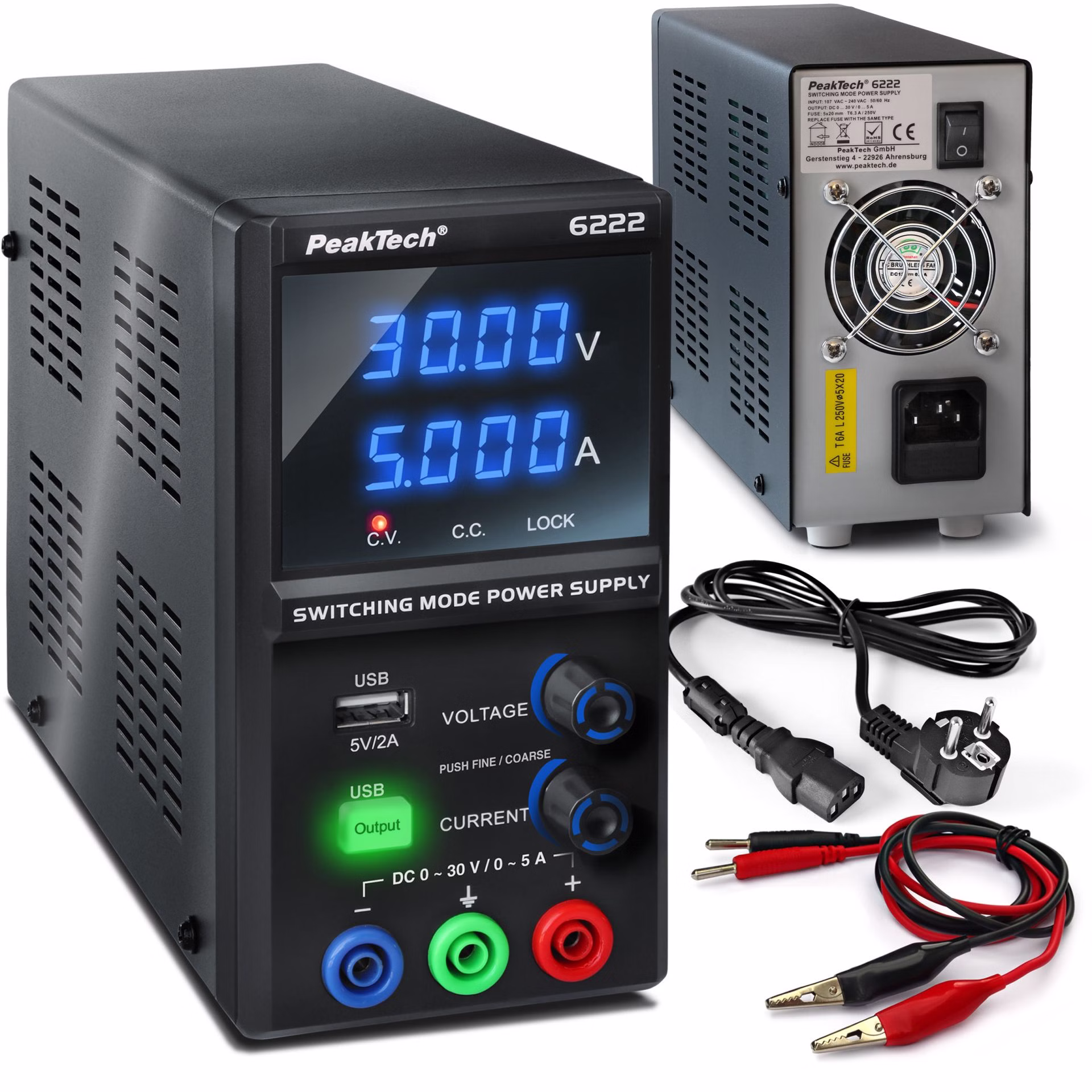 Dieses Labornetzgerät bietet präzise einstellbare Ausgangswerte von 30V und 5A mit einer Dauerleistung von 150W – ideal für den Einsatz in Laboren, Werkstätten und Entwicklungsumgebungen. Das elegante, schwarze Gehäuse mit einer gut lesbaren blauen LED-Anzeige fügt sich nahtlos in jede Arbeitsumgebung ein. Dank der hohen Auflösung von 1mA und 10mV können Sie selbst feine Anpassungen vornehmen, um Ihre Geräte optimal zu versorgen. Ein besonderes Feature ist der abschaltbare Ausgang, der Ihnen ermöglicht, Strom und Spannung im Voraus bei ausgeschaltetem Ausgang einzustellen. Zudem ist das Netzteil mit einem praktischen USB-Anschluss (5V/2A) an der Vorderseite ausgestattet, der sich ideal zum Laden von Geräten wie mobile Endgeräte eignet. Der temperaturgesteuerte Lüfter sorgt dabei für einen leisen Betrieb und verhindert eine Überhitzung, selbst bei längerem Einsatz.