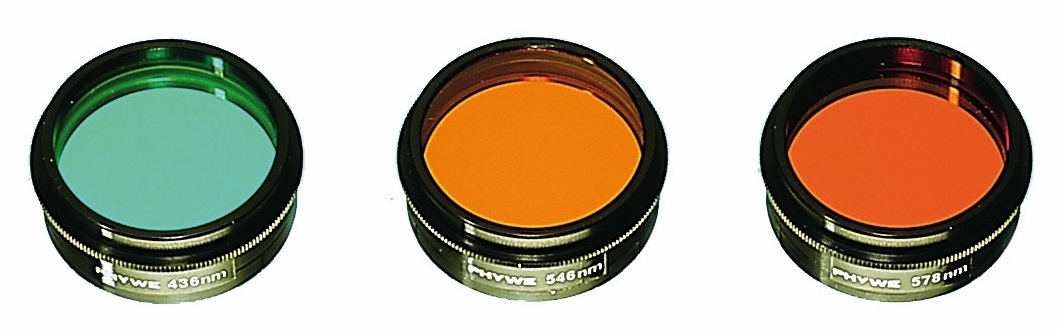 - Filterschwerpunkte bei Wellenlänge 578 nm, 546 nm, 436 nm