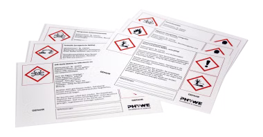 - Die Etiketten sind jeweils mit den entsprechenden Gefahrsymbolen versehen