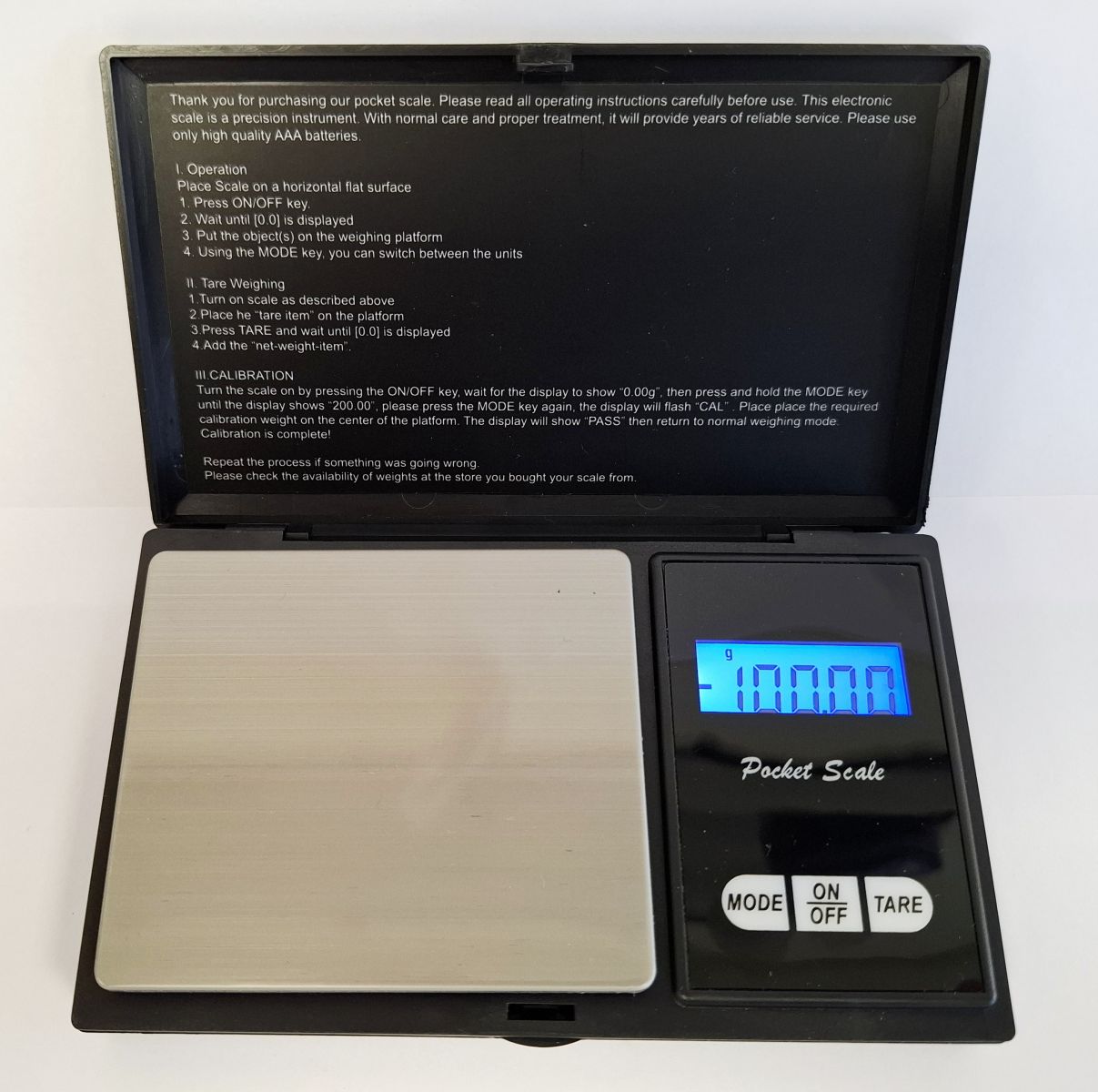 - Wägebreich: 100 g