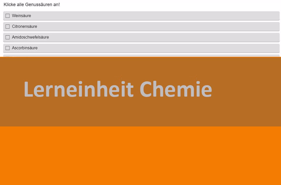Die interaktive Lerneinheit Chemie 7 - Säuren und Basen enthält 11 didaktisch aufbereitete Aufgaben und Videos. Die Inhalte dieser digitalen Lerneinheit sind ohne zusätzliche Software verwendbar und mit allen internetfähigen Endgeräten einsetzbar. Sie erhalten einen Weblink und einen QR-Code zu den interaktiven Aufgaben, die Sie mit allen Lehrenden und Lernenden an Ihrer Schule teilen können.