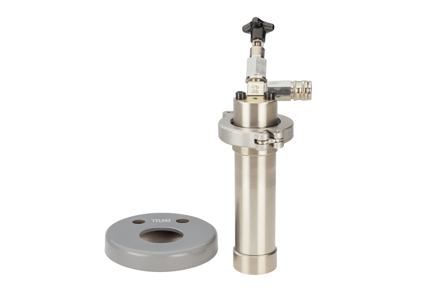 - Druckzylinder mit einem Volumen von etwa 130 ml wird durch eine Spannkette mit dem Deckel druckfest verbunden