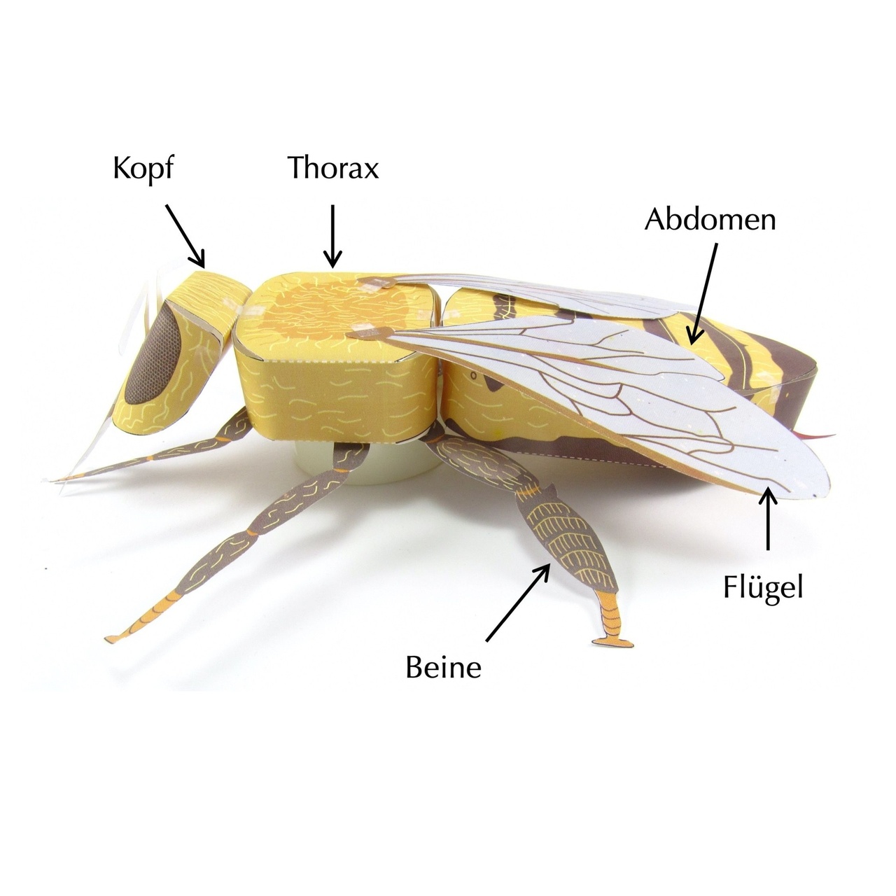 Zunächst basteln Ihre Schüler ein buntes Modell einer Honigbiene. Anschließend betrachten sie anhand des Modells die äußeren Strukturen eines Insekts und wie die Honigbiene an ihre Aufgabe angepasst ist. Das Modell umfasst: Kopf, Brustkorb, Hinterleib, Beine, Flügel, Fühler, Mundwerkzeuge, Stachel, Facettenaugen, Pollenkörbchen und vieles mehr!