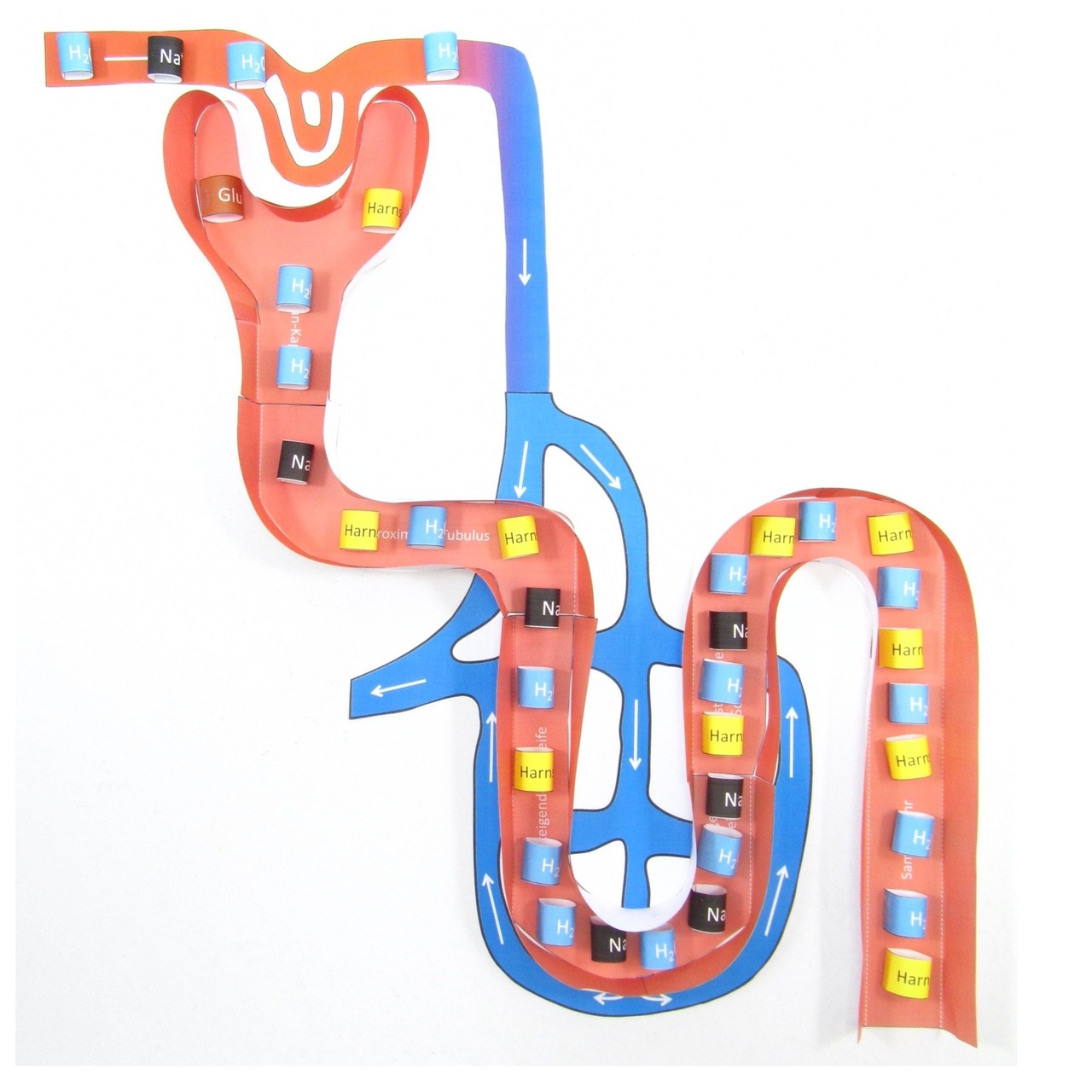 Ihre Klasse fertigt ein Modell des Nephrons an und zeigt anhand dieses Modells, wie die Ultrafiltration abläuft und wie nützliche Moleküle und Ionen rückresorbiert werden. Die Schüler verwenden Modellionen, um den Prozess im Detail zu verfolgen.