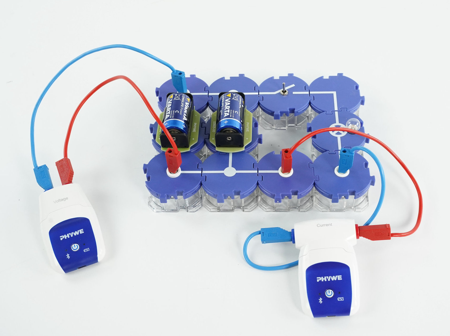 Schalte zwei Batterien in Reihe und danach parallel und untersuche, wie sich das auf die Spannung und auf die Stromstärke auswirkt.