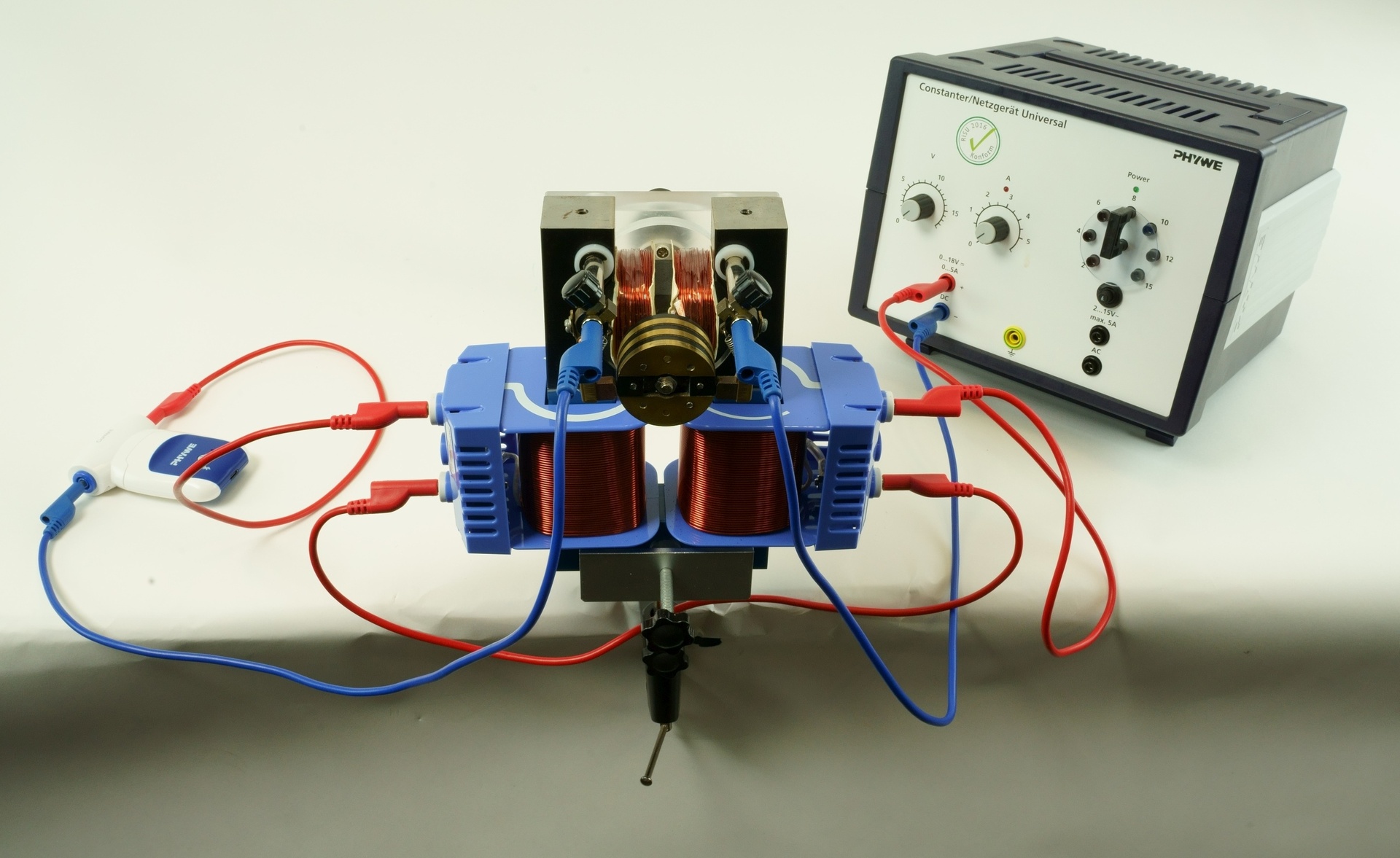 Ein Elektromotor kann auch mit einem Elektromagneten als Feldmagnet betrieben werden. Werden Ankerspulen und Feldspulen in Reihe geschaltet, dann handelt es sich um einen Hauptschlussmotor. Die Eigenschaften dieses Motors werden untersucht indem der Drehsinn beobachtet und die Stromstärke gemessen wird.