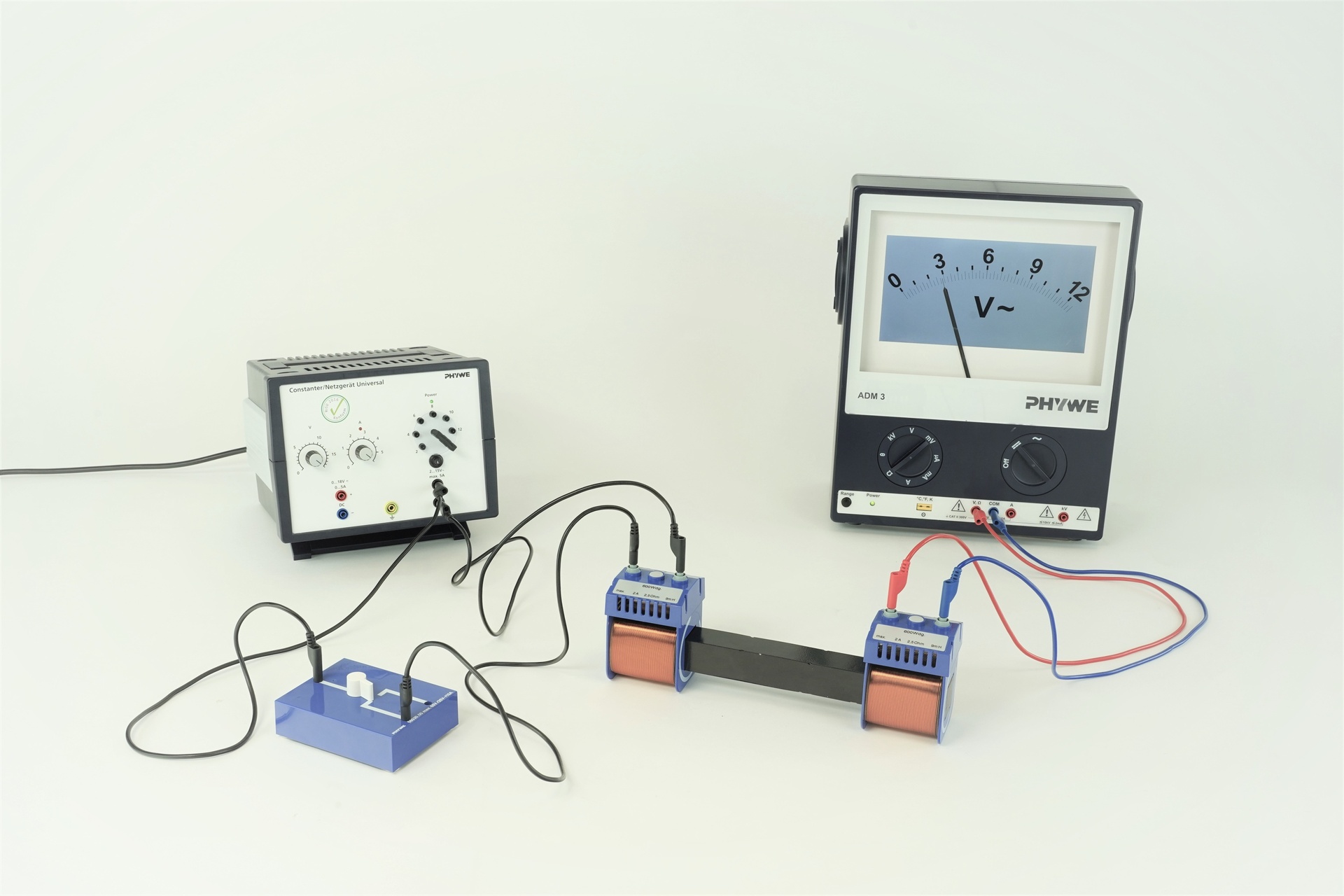Es soll demonstriert werden, dass man mithilfe eines Elektromagneten Induktionsspannungen erzeugen kann und welche Bedingungen deren Höhe beeinflussen. Dazu werden die induzierten Spannung in Abhängigkeit von deren Abstand und mit/ohne Eisenkern untersucht.