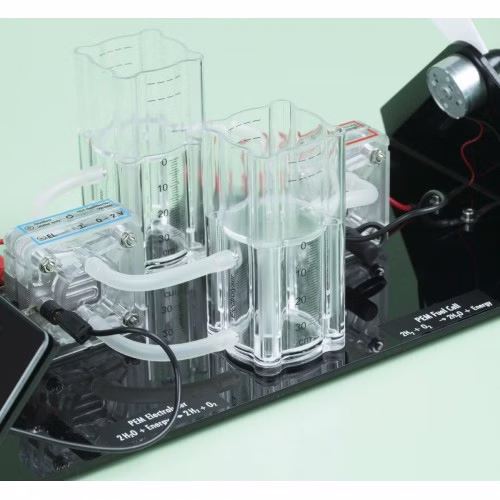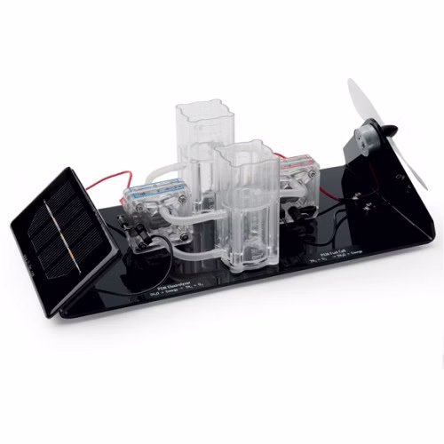 - Bestehend aus Solarmodul, PEM-Elektrolyseur, Wasserstoff- und Sauerstoffspeicher, PEM-Brennstoffzelle und Flügelrad als Verbraucher.