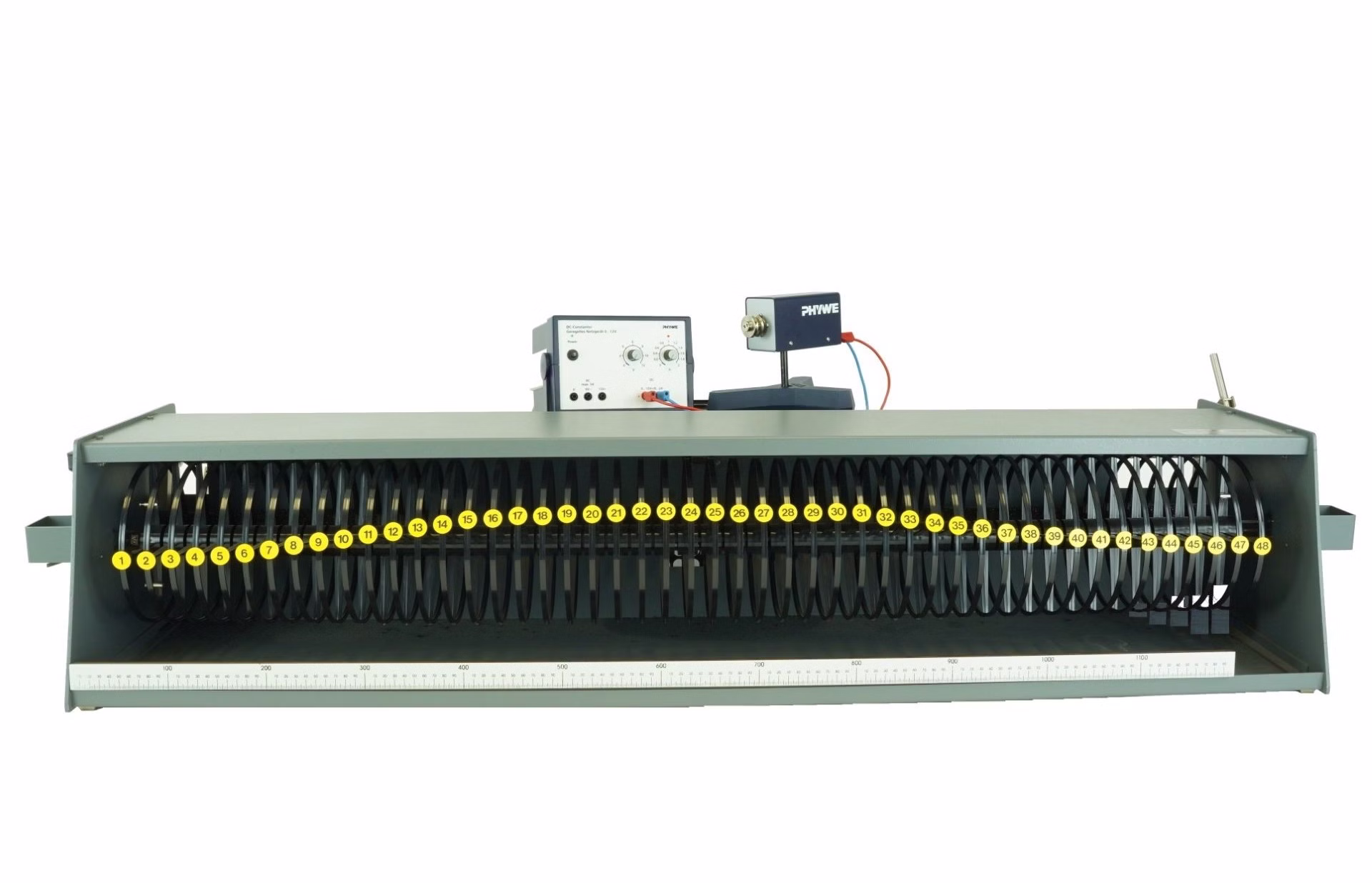 Kompaktgerät zur demonstrativen Darstellung der Wellenausbreitung am Beispiel gekoppelter Pendel und Durchführung quantitativer Messungen, z.B. von Wellenlänge und Frequenz mit Hilfe von Lichtschranken.