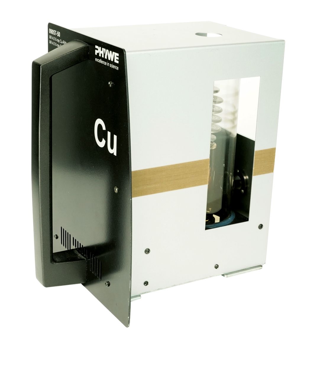 Justierte Kupfer (CU) Röntgenröhre in einem Stahlblechgehäuse mit Tragegriff für den betriebsbereiten Einsatz in der XR 4.0 expert unit. Mit Griff, mechanischer Verriegelung und zwei Schaltstiften, die die entsprechenden Sicherheitsschalter des Grundgeräts nur dann auslösen, wenn das Steckmodul korrekt eingesetzt ist.