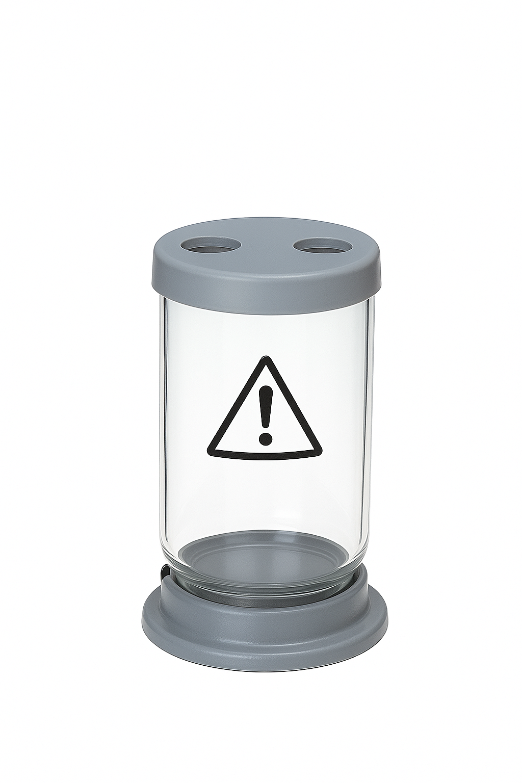 Kalorimeter zur Bestimmung von Reaktionsenthalpien, latenten Wärmemengen oder spezifischen Wärmekapazitäten. Die durchsichtige Glaskonstruktion ist als abgeschlossenes System konstruiert, dass weder Energie noch Arbeit mit der Umgebung ausgetauscht werden können. Das Kalorimeter mit seiner geringen Wärmkapazität (gute Wärmeisolation) eignet sich daher u.a auch die Bestimmung von Neutralisationsenthalpie von verdünnten Säuren und Laugen.