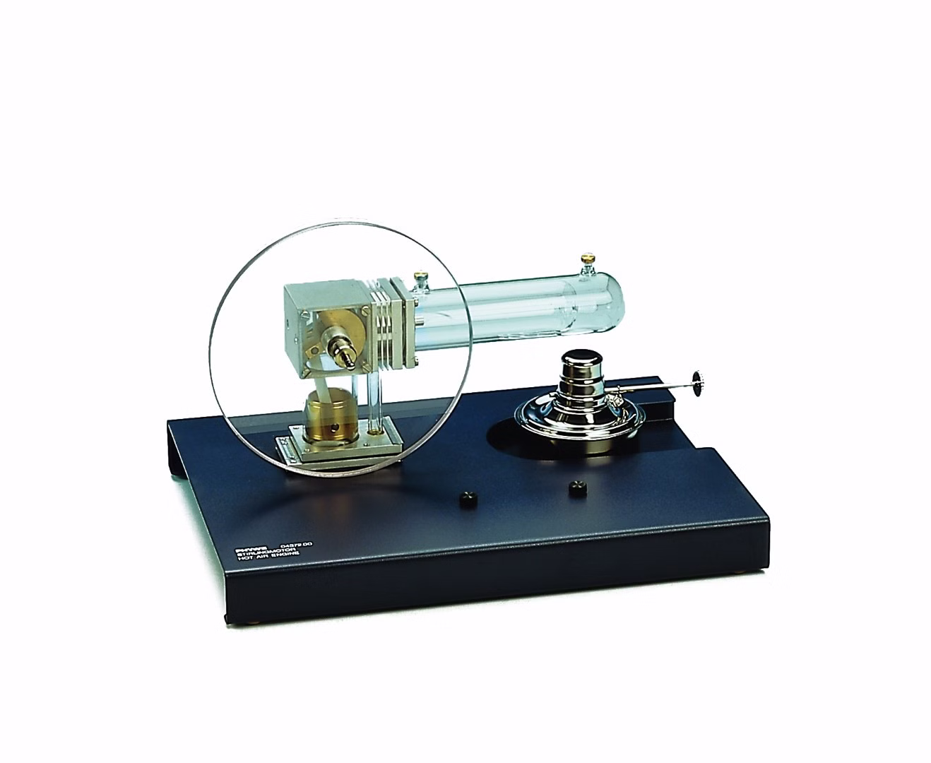 Stirlingmotor zur Demonstration der Funktionsweise eines Heißluftmotors, einer Kältemaschine/ Wärmepumpe.