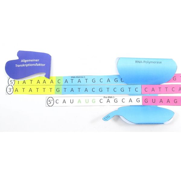 Funktion und Verwendung Transkription ist der Vorgang, bei dem die genetischen Informationen, die als DNA im Kern gespeichert sind, in die RNA kopiert werden, damit sie verwendet werden können, um neue Proteine herzustellen. Ihre Schüler werden ein Modell einer DNA-Matrize bauen und dies in Messenger-RNA (mRNA, Boten-RNA) transkribieren. Schullizenz: einmal kaufen, unbeschränkt drucken! Perfekt für den Einsatz im Klassenzimmer oder für den Heimunterricht! Das Modell umfasst die Rolle der Promotoren, Transkriptionsfaktoren und RNA-Polymerase. Außerdem wird das Thema der RNA-Weiterverarbeitung abgedeckt, u. a. RNA-Spleißen, Exons, Introns, Poly-A-Schwanz und 5'-Cap. Dieses farbenfrohe Modell zeigt deutlich, worum es bei der Transkription geht. Umfasst farbige PowerPoint-Präsentation für den Unterricht! Fertig gebaut in nur 30 Minuten! Maße: 64cm x 26cm Zum Download gehört: Anleitung für den Unterricht, Vorlagen, PowerPoint-Datei. Außerdem wird benötigt: Papier, Schere, Klebeband |