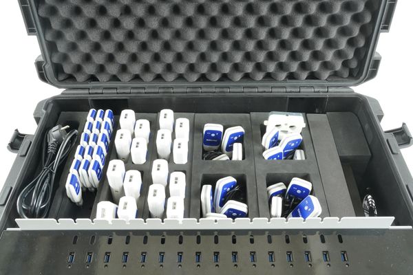 Mobiles, umfangreiches und komfortables Cobra SMARTsense Kofferset inkl. Sensoren und Zubehör für bis zu 16 Schüler-Gruppen, um das Thema "Digitaler Unterricht" mit Smartphone, Tablet oder PC umfassend zu erarbeiten. Die Geräte-Ausstattung ist abgestimmt auf den Chemie-Unterricht mit Schülerinnen und Schülern. Durch das integrierte Trolley-System kann der Koffer leicht transportiert werden. Bis zu 16 Cobra SMARTsense-Sensoren können gleichzeitig über USB geladen werden.