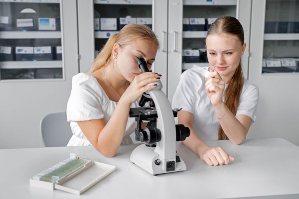 Funktion und Verwendung Modernes binokulares Schülermikroskop mit 400x Vergrößerung, Kreuztisch, LED-Beleuchtung und integriertem Akku. Vorteile