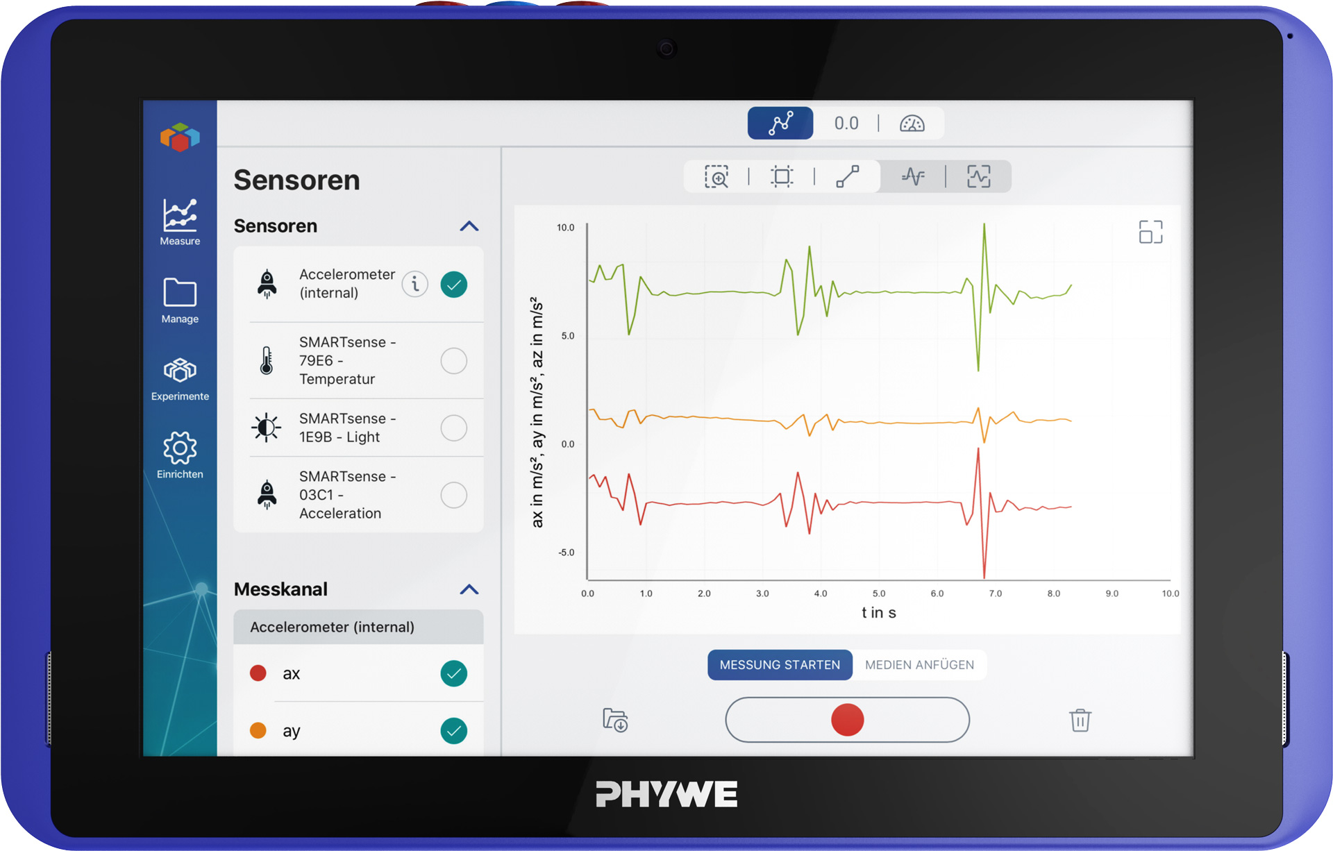 - Ausstattung - Direkt losmessen mit 7 internen Sensoren und der vorinstallierten Mess-Software measureAPP.