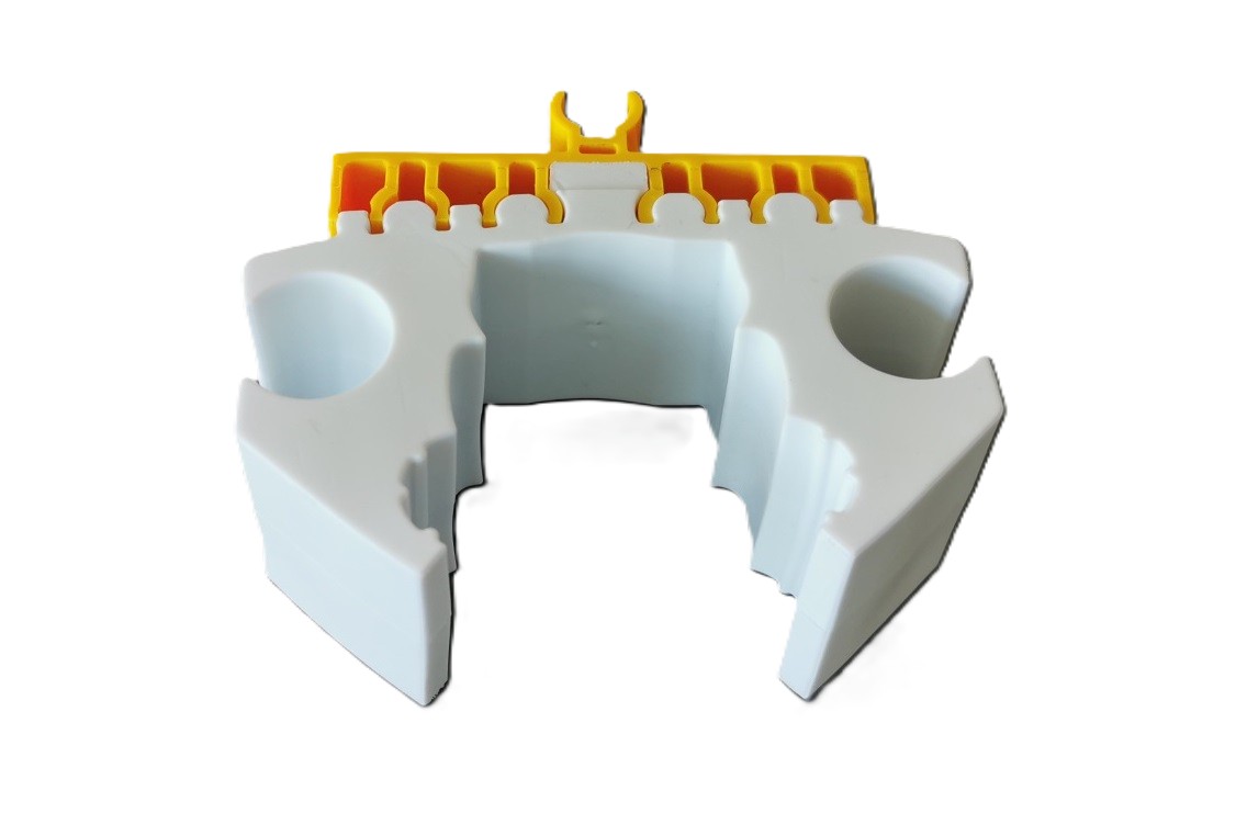 - Aus elastischem Kunstoff (weiß) an Hartplastik (gelb).