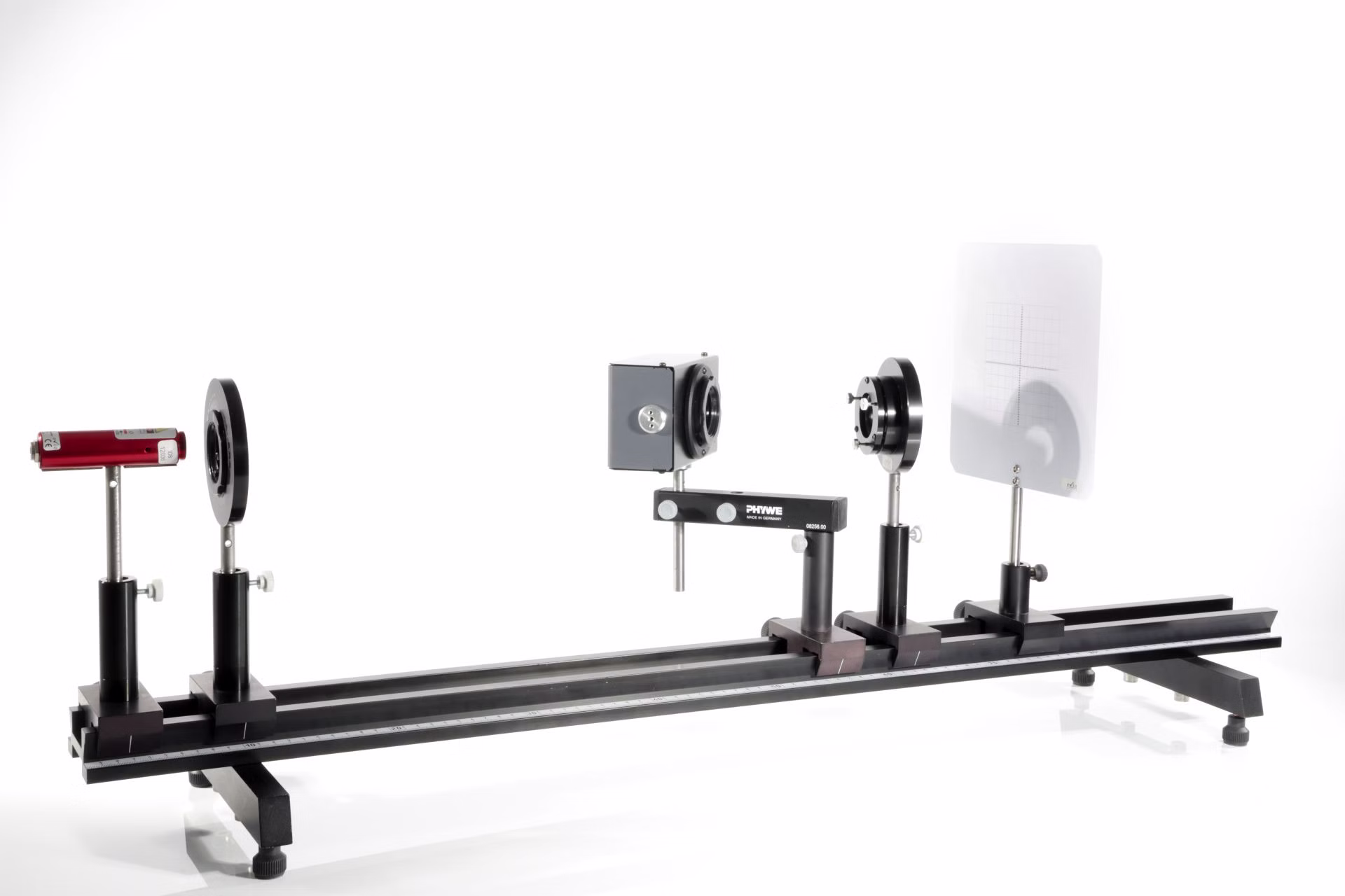 Mit dem Newton-Ringe Apparat den Durchmesser der Ringe bei verschiedenen Wellenlängen messen und:
