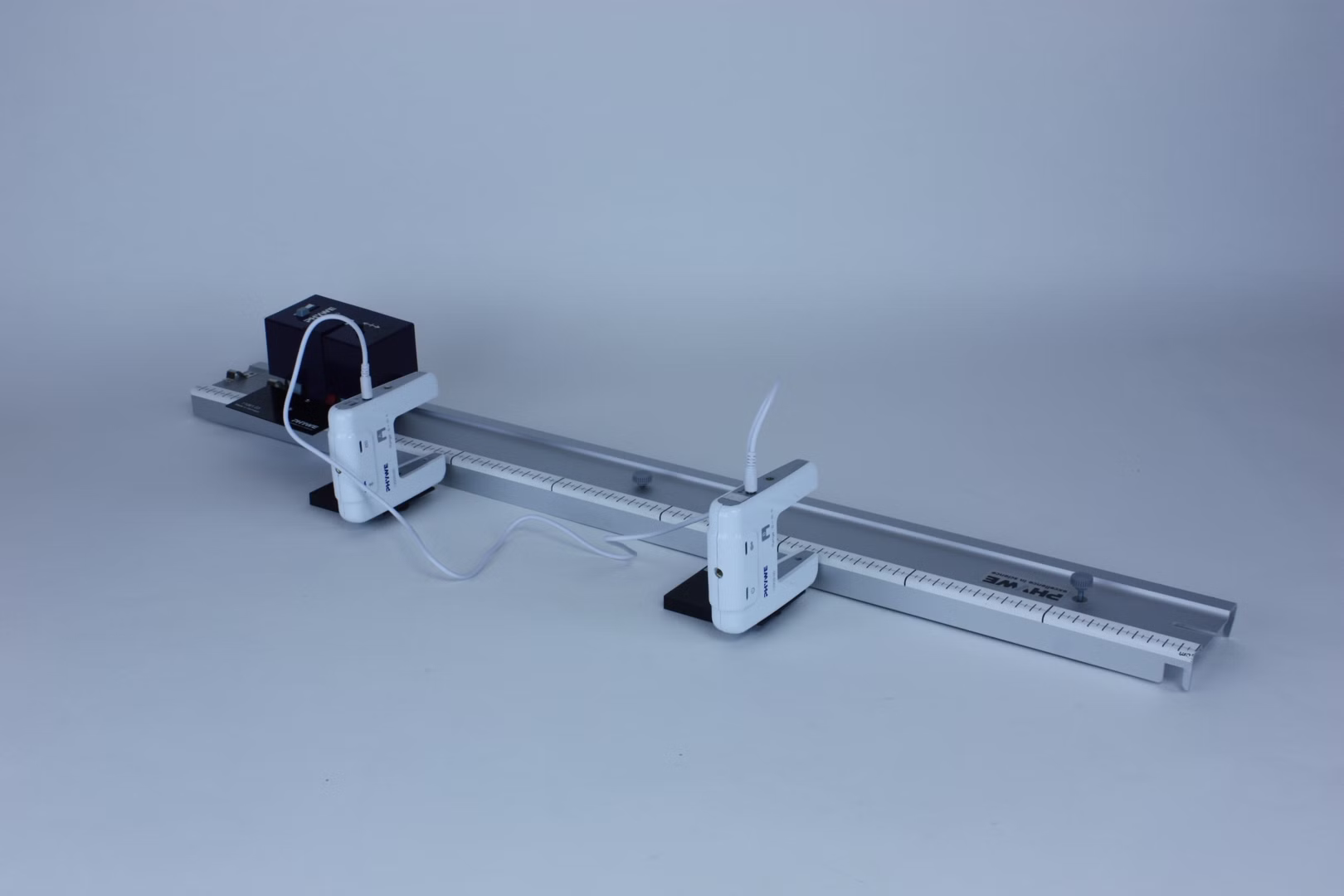 Die Schüler lassen den Messwagen mit Antrieb bei konstanter Geschwindigkeit über die Fahrbahn fahren. Dabei messen die beiden Lichtschranken am Rand der Fahrbahn zunächst die Zeit, die der Wagen zum Zurücklegen der Strecke zwischen diesen benötigt. Der Abstand zwischen den Lichtschranken wird variiert. Dann wird der Messmodus umgeschaltet und die Schüler messen mit der hinteren Schranke die Momentangeschwindigkeit. Es wird wieder die Position variiert.
