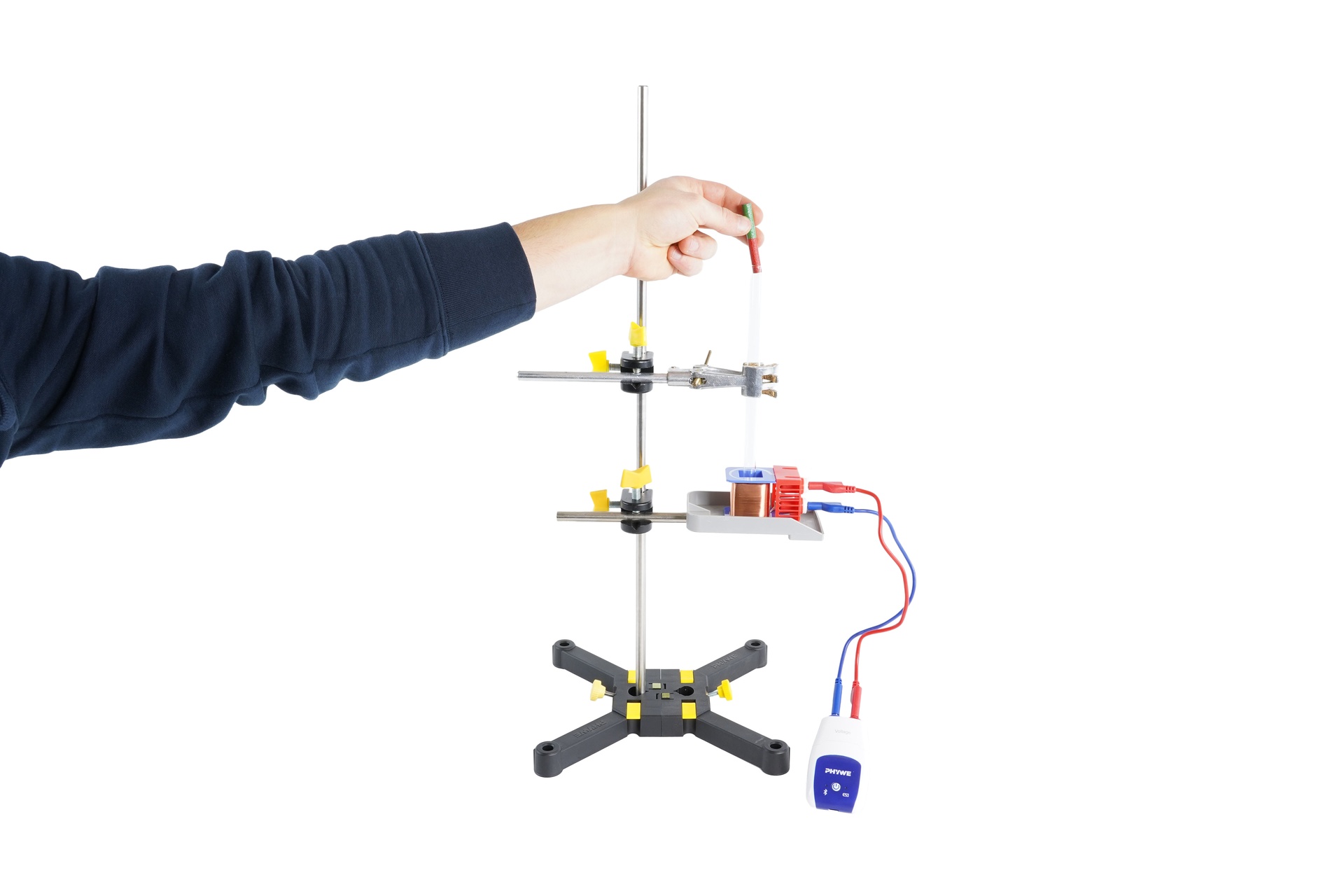 Die Schülerinnen und Schüler sollen das Prinzip der elektromagnetischen Induktion verstehen. Dabei soll der Verlauf der Induktionsspannung während der Fallzeit des Magneten untersucht und verstanden werden.