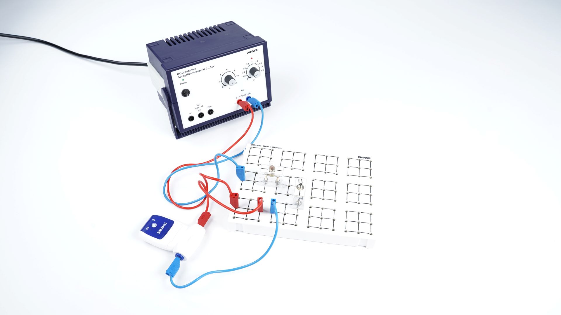 - Verbinde den Cobra SMARTsense Current mit der measureAPP und messe die Stromstärke für unterschiedliche Netzspannungen. Wechsel hierbei die Glühbirnen für die passenden Spannungen.