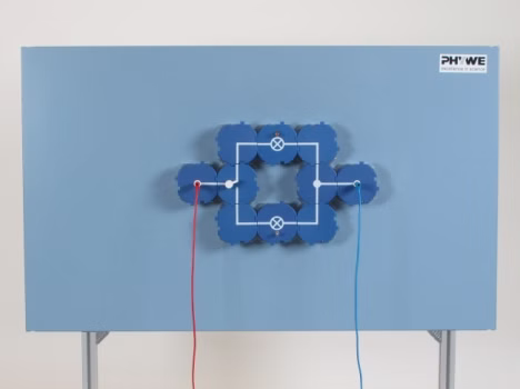 - Doppelter Lernerfolg: Elektrischer Schaltplan auf der Ober- und reelle Bauteile auf der Unterseite sichtbar