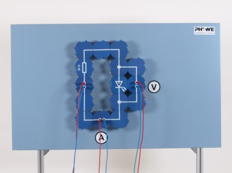 Es soll die Kennlinie einer Leuchtdiode (LED: Light-Emitting-Diode) durch Messung von Spannung und Stromstärke aufgenommen werden. Weiterhin soll demonstriert werden, dass mithilfe einer LED die Polarität einer Gleichstromquelle erkannt werden kann und eine Unterscheidung von Gleich- und Wechselspannungen möglich ist.