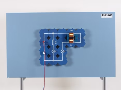 Mithilfe einer Parallelschaltung aus einem ohmschen Widerstand und einer Spule mit hoher Induktivität soll demonstriert werden, dass diese Spule das Anwachsen des Stromes beim Einschalten verzögert.