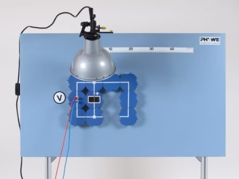 Es soll untersucht werden, wie die von einer Solarzelle erzeugte Leerlaufspannung und der im Kurzschlussfall fließende Strom von der Beleuchtungsstärke abhängen.